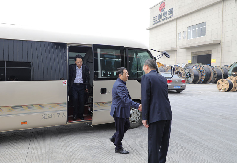 (王雄在調(diào)研時(shí)詳細(xì)詢問了三湘電纜各方面情況,并聽取了三湘電纜董事長申旺的相關(guān)匯報(bào))